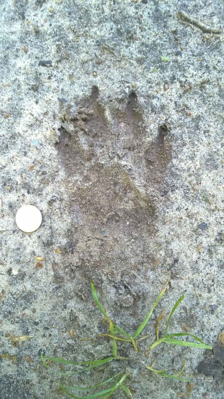 Une empreinte de canidé se relève sur une voie et cette voie sur une piste.