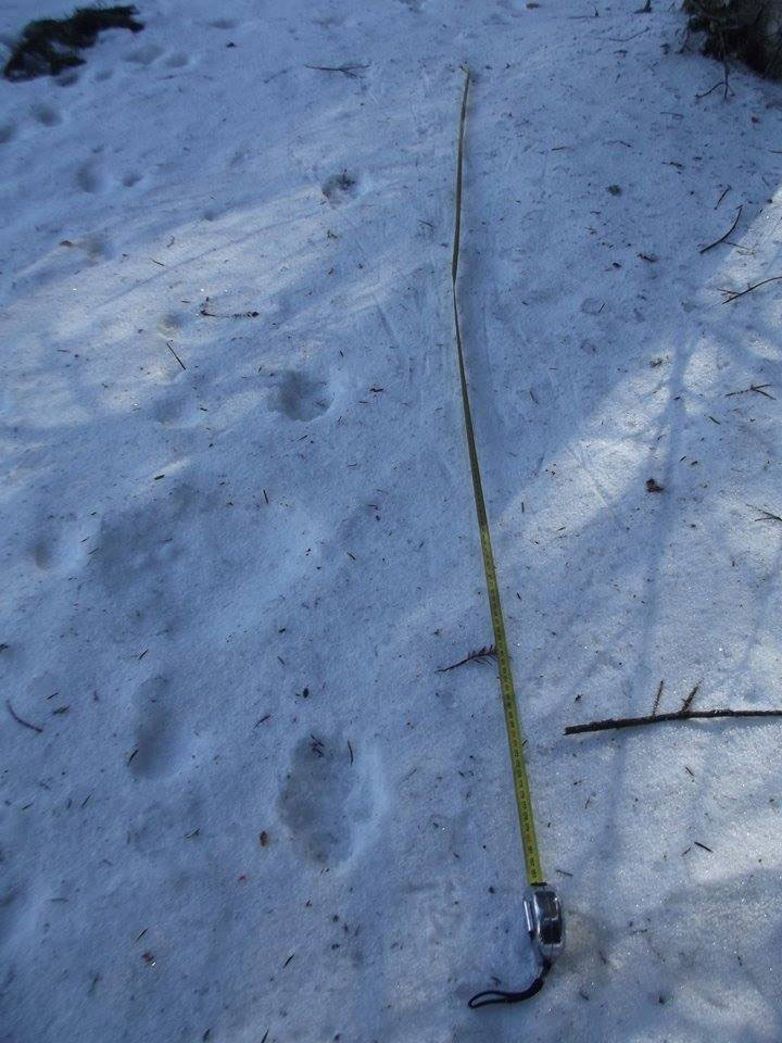 le coefficient est supérieur à 1,35 et inférieur ou égale à 1,5 et la largeur supérieure ou égale à 8,2 et pour une foulée minimum de 50 cm= loup très probable si la longueur de la pelote plantaire est comprise entre 33 et 45% de la longueur totale de l’empreinte. (griffe comprise)
