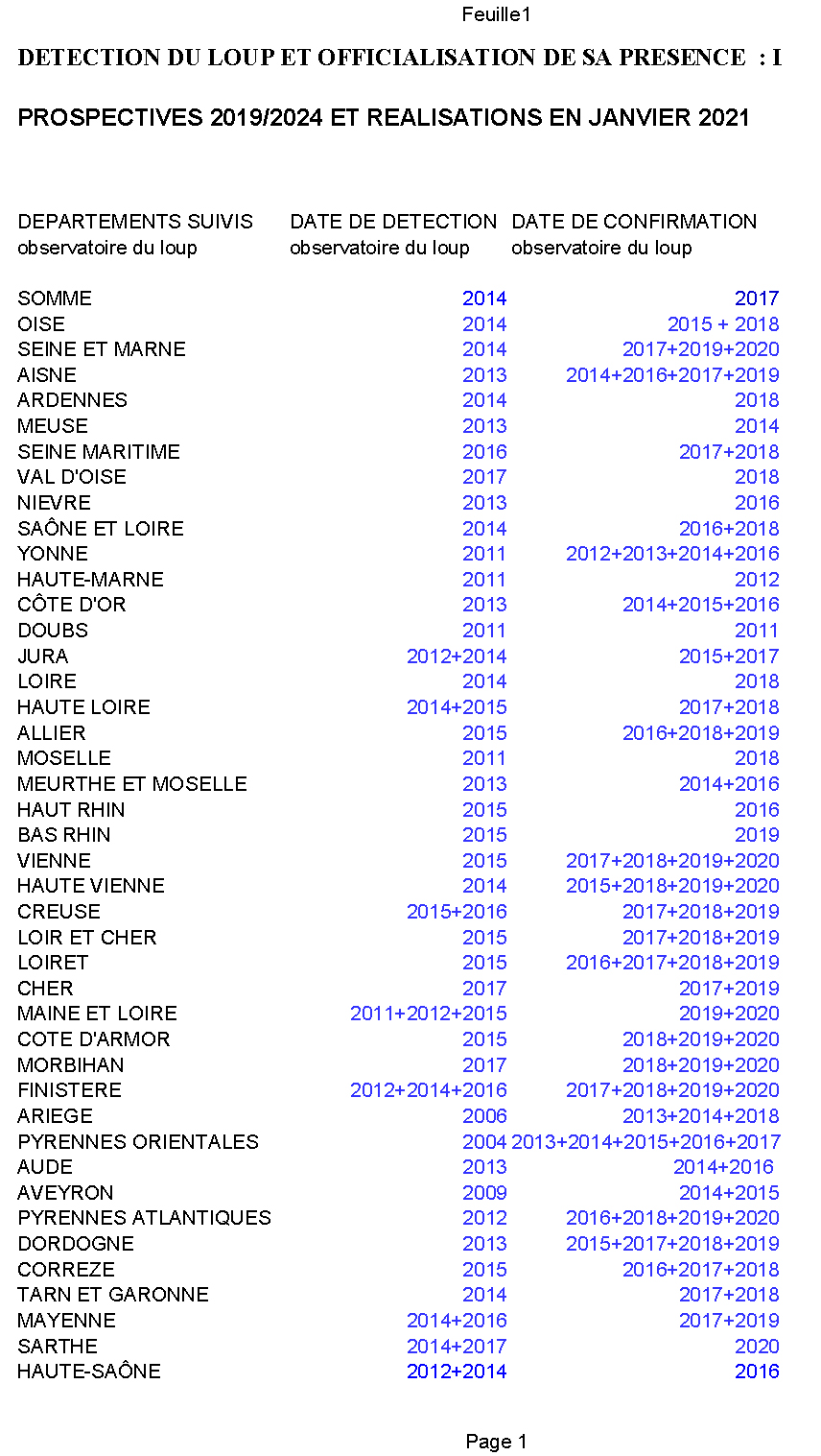 Concernant la détection du loup, les confirmations établies par l’Observatoire du loup et la confirmation officielle de sa présence en rapport avec cette prospective 2019/2024 émise le 3 août 2018: LES CONSTATS