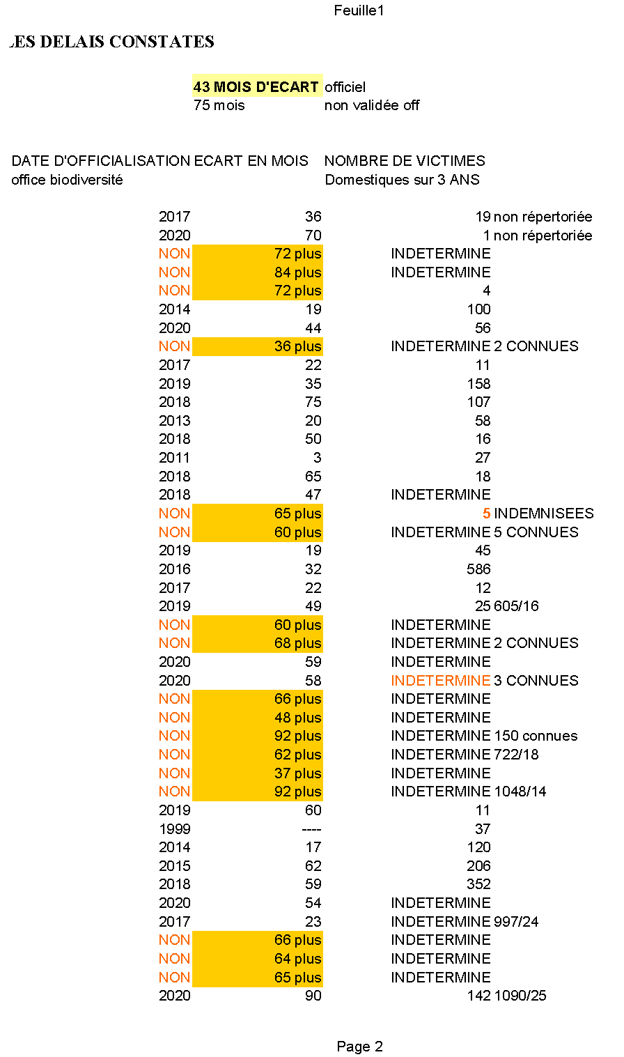 SEINE ET MARNE : détectée dès 2014,confirmée en 2017, puis en 2019, puis en Novembre 2020, non officialisée (données formelles connues en 2015 et 2020).