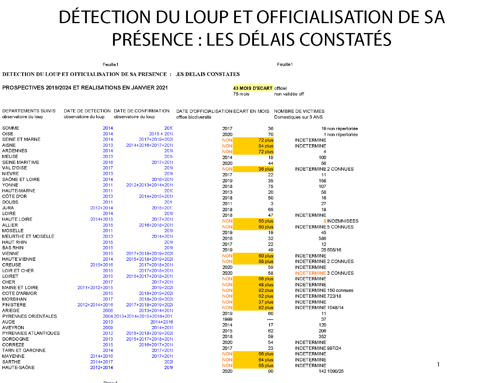 L’écart temporel moyen entre les premiers indices formels de présence du loup dans un département et son officialisation par les instance de l’État est de 44 mois….