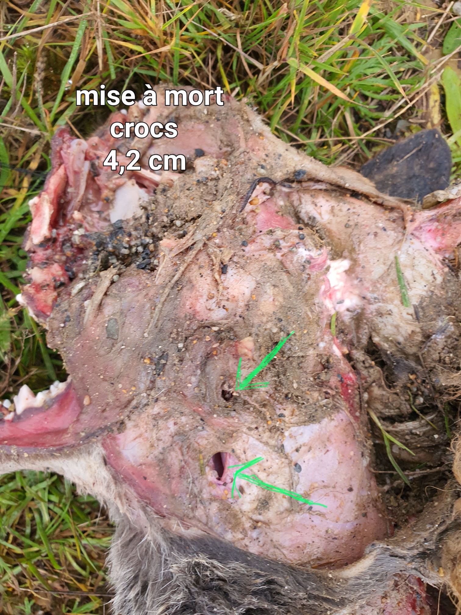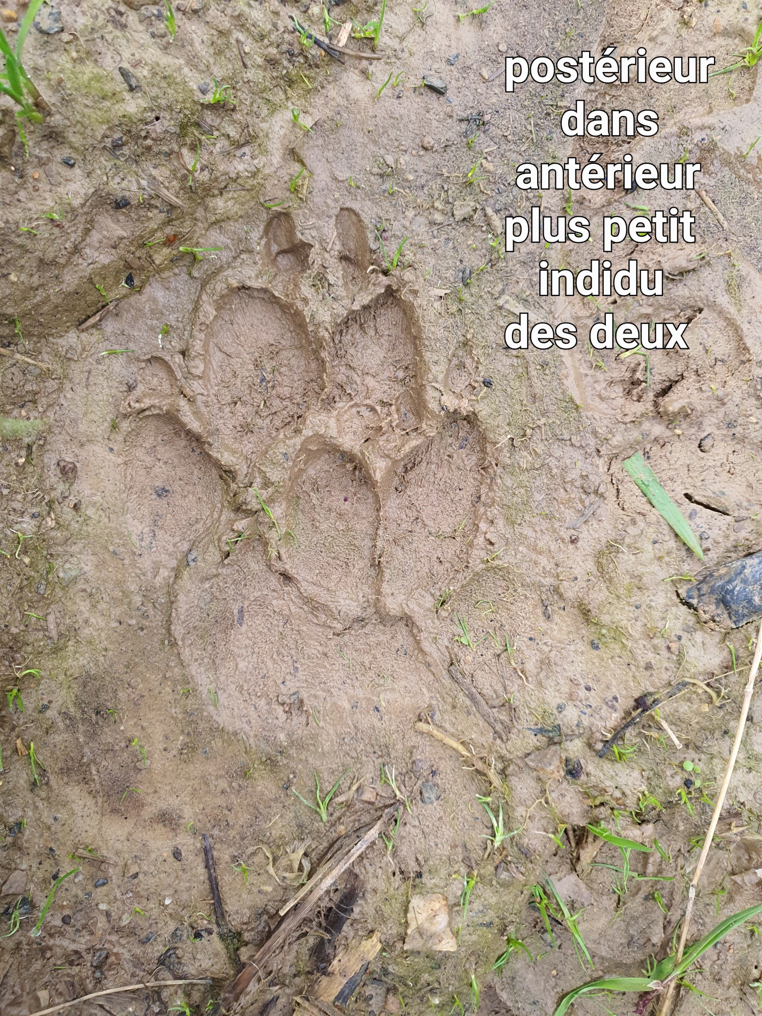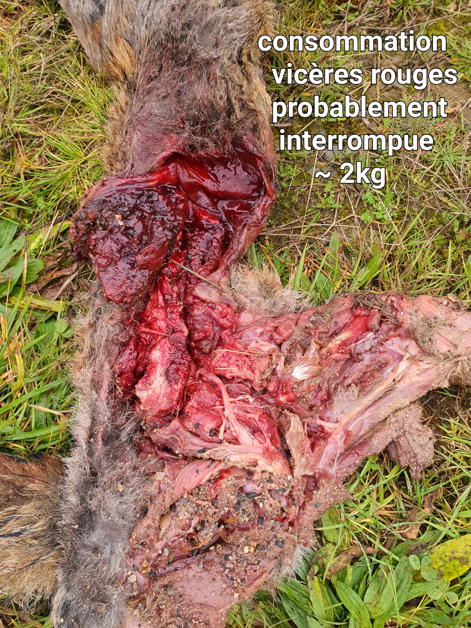 La découverte d’un renard mis à mort et consommé qui a fait l’objet d’une expertise (consommation des viscères rouges, écartement des crocs de 40 mm, os éclatés, retrait de l’intestin et dépose aux abords du cadavre) et un relevé de piste de 500 mètres avec un aiguillage (séparation de la piste rectiligne en deux pistes distinctes) qui s’est formé au passage d’un talus vers une zone de labour semée attestent de la présence de deux individus.