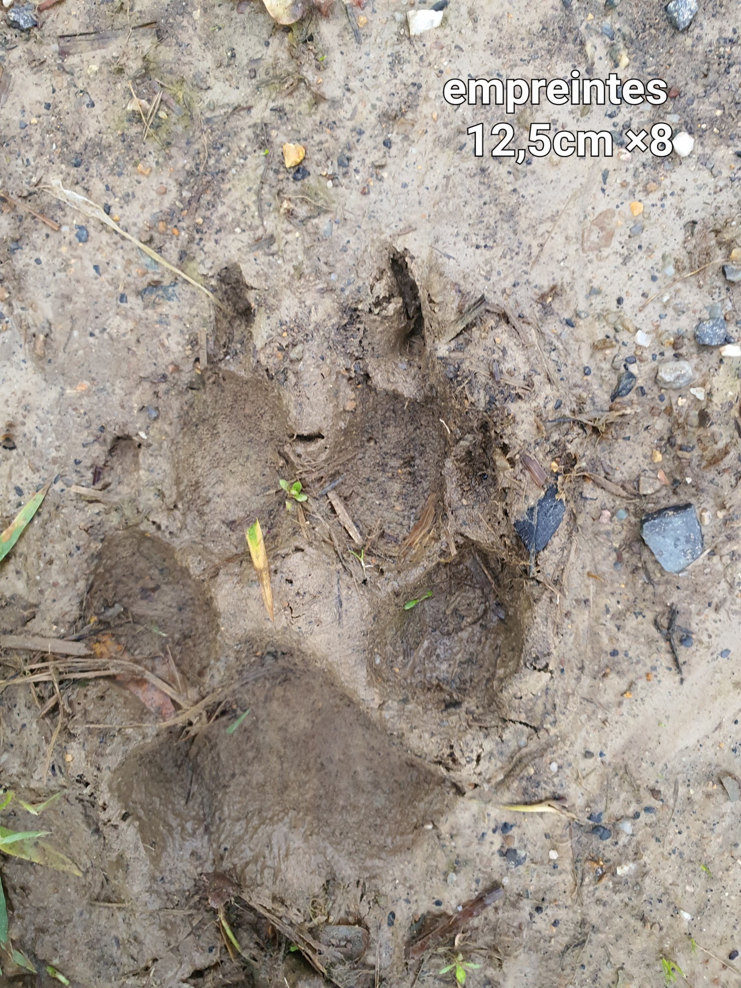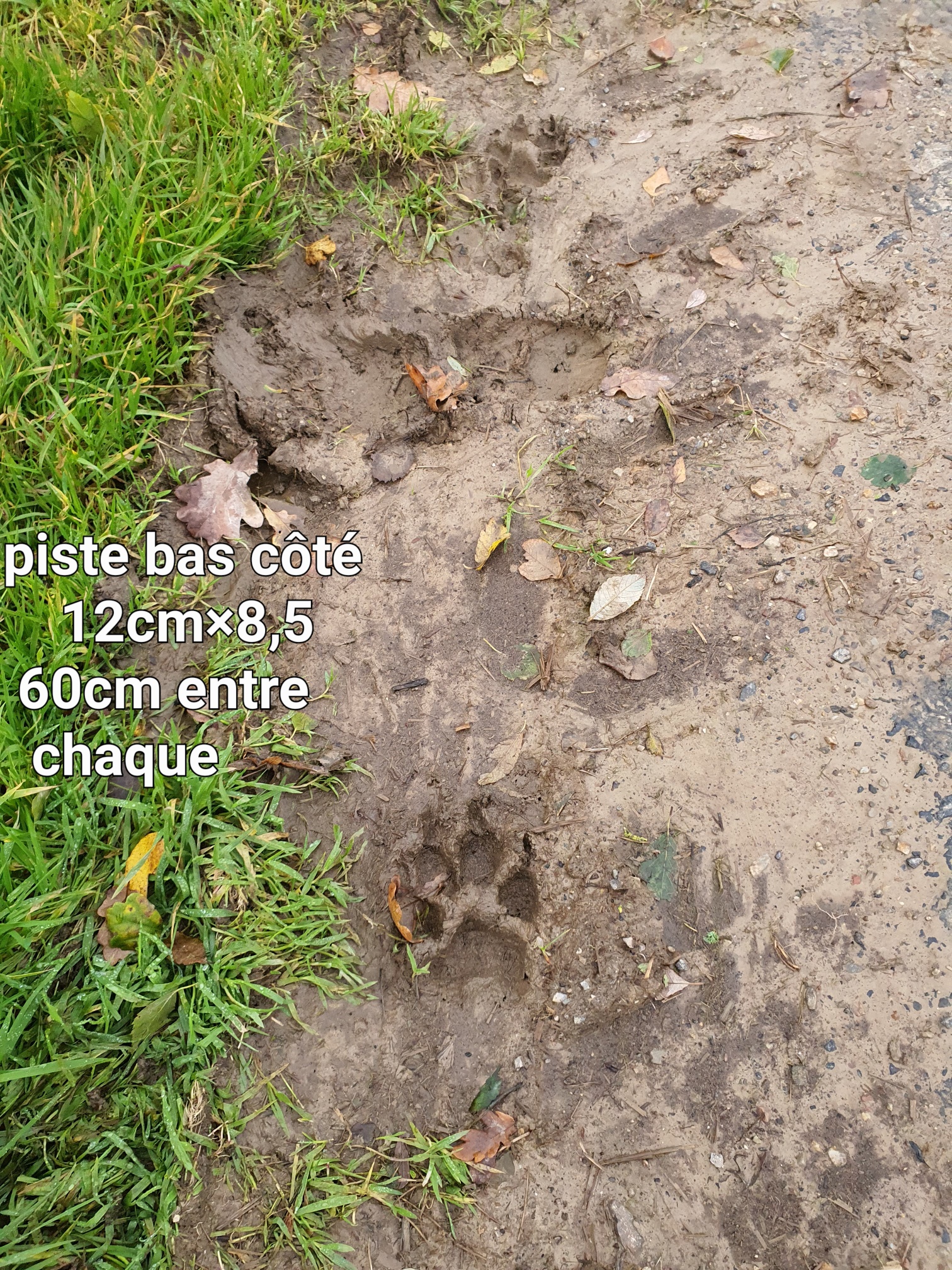 Ces deux pistes distinctes sont également très rectilignes, les empreintes relevées sont celles d’un mâle (coefficient 1,42) et celles d’une femelle, moins lourde dont le coefficient relevé sur empreinte est de 1,53.